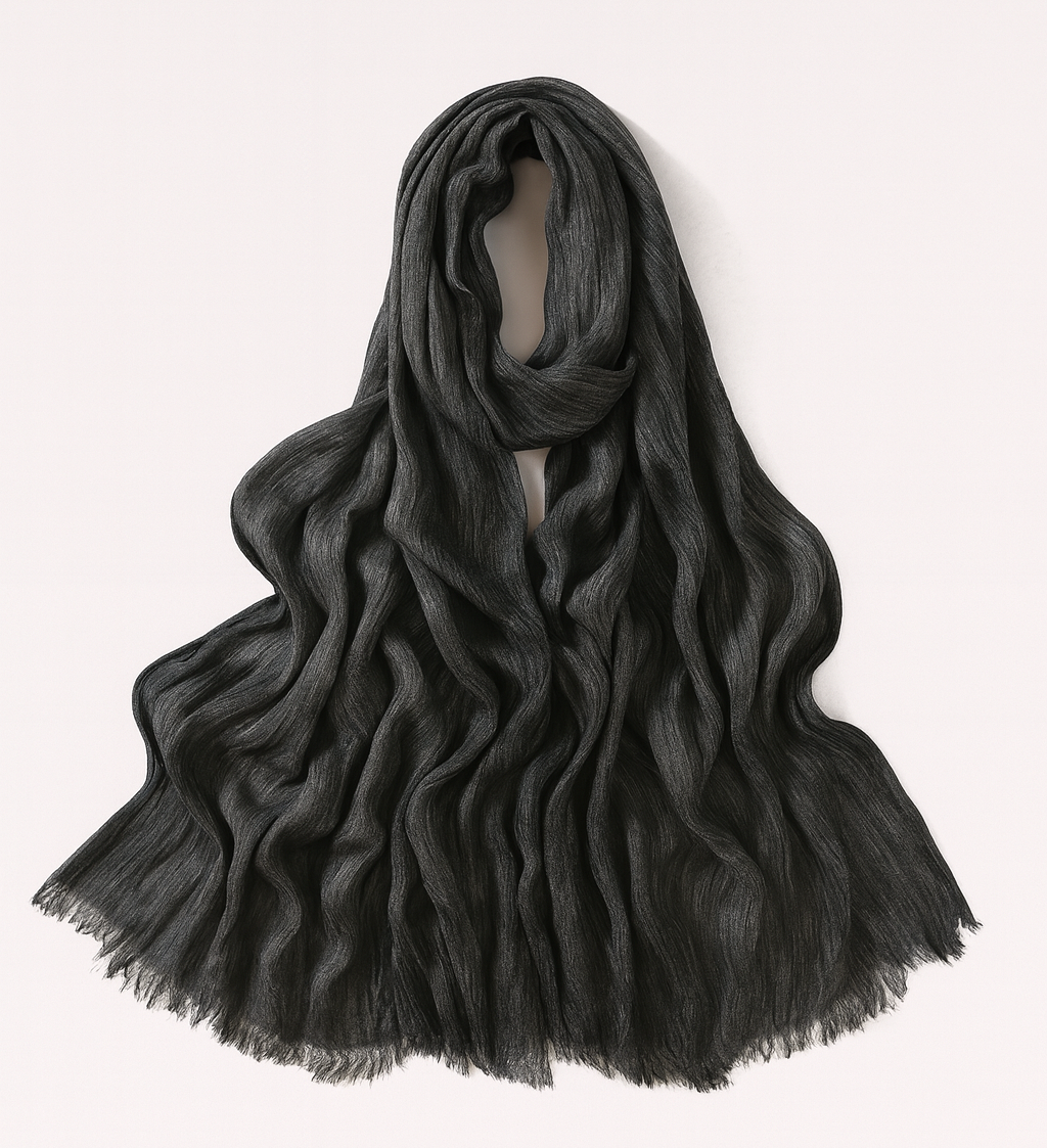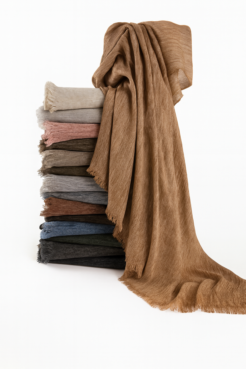 الملمس والنسيج: يتميز بنسيج مجعد أو شبيه بالشاش ، مما يمنحه حجماً طبيعياً وانسيابيةً رائعة. يبدو النسيج خفيف الوزن ومسامياً ، مما يوحي بالراحة عند ارتدائه طوال اليوم.
