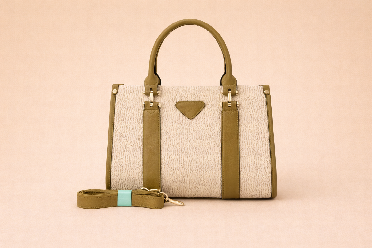 أضيفي لمسة من الأناقة إلى إطلالتك اليومية مع هذه الحقيبة الكلاسيكية ذات اللونين بتصميمها المتين. مصنوعة من جلد فاخر ذي ملمس مميز، تتميز هذه الحقيبة بلون أنيق يكمله لمسات لونية غنية لإطلالة عصرية راقية. تصميمها المتين يجمع بين الأناقة والعملية، مما يجعلها مثالية للاستخدام من الصباح إلى المساء.